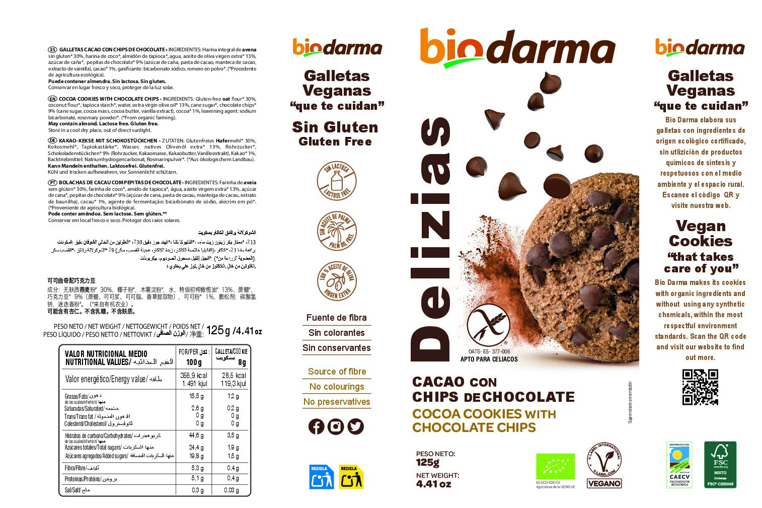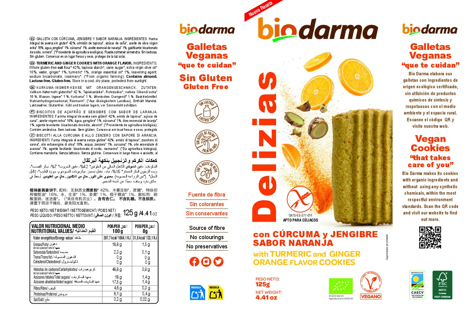 DELIZIAS WITH CINNAMON AND LEMON FLAVOR. INGREDIENTS: Whole wheat flour oats gluten-free* 42%, tapioca starch*, cane sugar*, extra virgin olive oil* 16%, water, cinnamon* 1%, lemon essential oil* 1%, raising agent: baking soda, rosemary*.